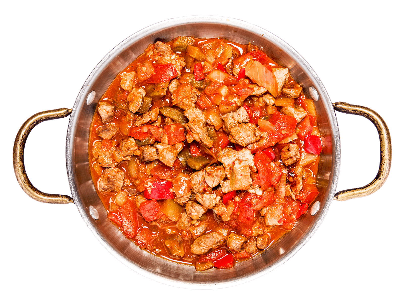 Diced lamb with tomato , peppers , onion and spices