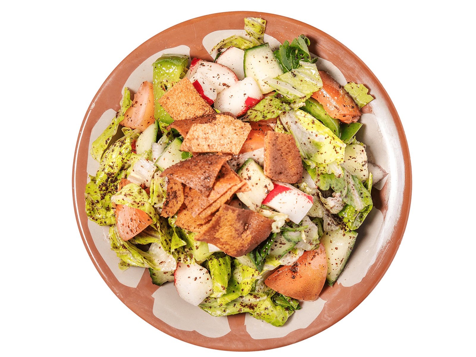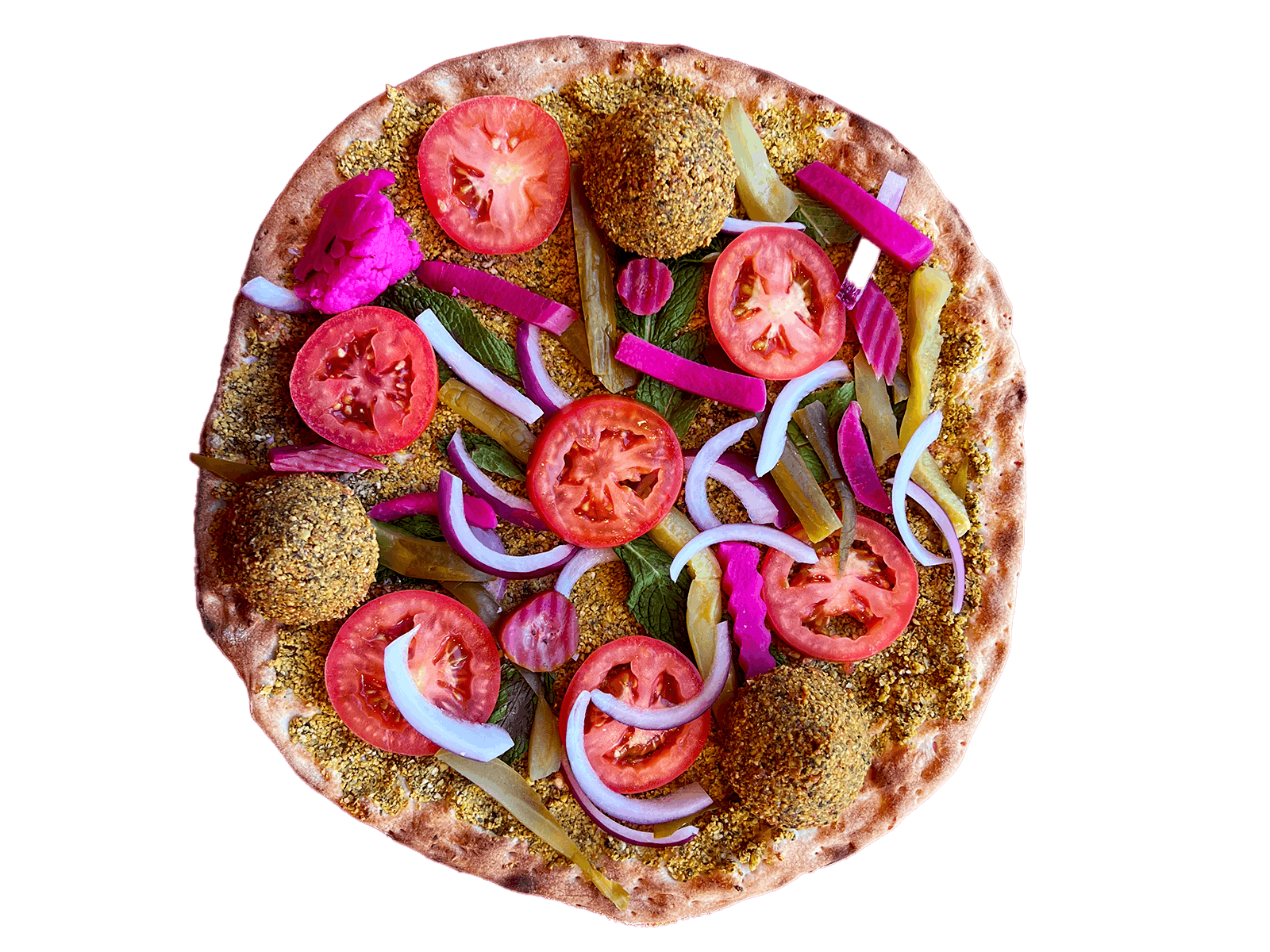 Tomato, Onion, Radish, Falafel, Mint